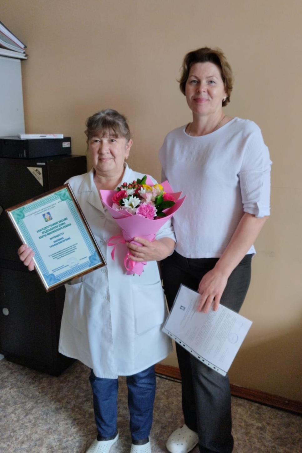 В селе Кышик председатель Думы Ханты-Мансийского района поздравила медицинских работников и вручила Благодарственное письмо председателя Думы Ханты-Мансийского района за многолетний добросовестный труд медицинской сестре врачебной амбулатории с. Кышик Насоновой Татьяне Викторовне.