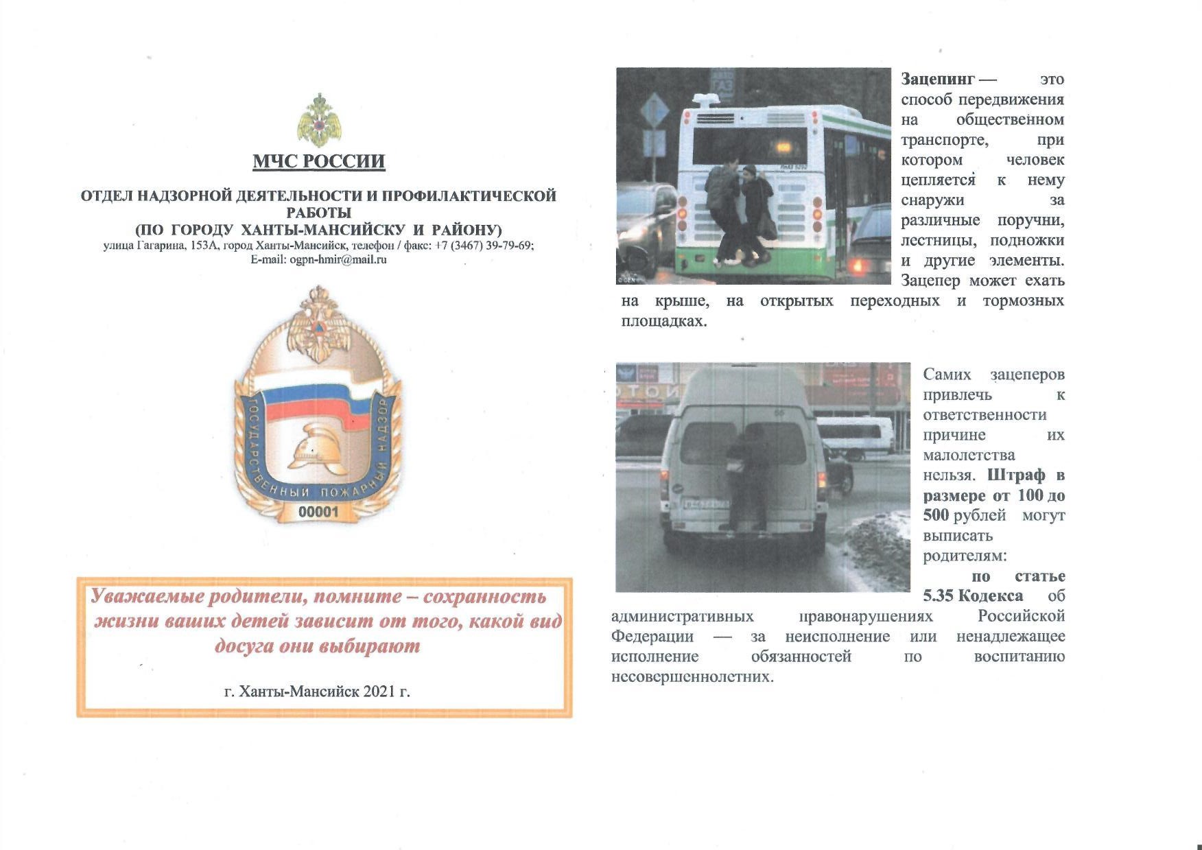 МЧС РОССИИ ОТДЕЛ НАДЗОРНОЙ ДЕЯТЕЛЬНОСТИ И ПРОФИЛАКТИЧЕСКОЙ РАБОТЫ (ПО ГОРОДУ ХАНТЫ-МАНСИЙСКУ И РАЙОНУ) информирует